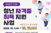 정안뉴스 황은경 기자 | 충북 진천군 청년센터는 10월부터 청년들의 직무 역량 강화와 진로 설계를 돕고 경제적 부담을 완화하기 위해 ‘청년 자격증 취득 지원사업’을 본격 시행한다고 9일 밝혔다. 이번 사업은 어학 20종, 한국사능력검정시험(기본·심화), 국가공인자격증 등 다양한 시험의 응시료를 지원하며, 자격증별 최대 10만 원까지 지원한다. 단, 운전면허시험은 지원 대상에서 제외되며, 기타 자세한 내용과 신청 방법은 진천군 청년센터 공식 블로그와 SNS(인스타) 채널을 통해 확인할 수 있다. 군 청년센터는 이번 사업을 통해 지역 청년들이 필요한 자격증을 취득하는 데 실질적인 도움을 주고, 지역 내 청년들의 진로 탐색과 경쟁력을 강화할 수 있을 것으로 기대하고 있다. 군 청년센터 관계자는 “청년들이 자격증 취득 과정에서 겪는 비용 부담을 줄여 안정적으로 미래를 준비할 수 있도록 지원하겠다”며 “앞으로도 청년들의 성장을 돕는 다양한 지원 정책을 지속적으로 추진해 나가겠다”고 말했다.