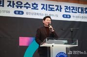 정안뉴스 안정주 기자 | 용인특례시는 5일 오후 용인상공회의소 세미나실에서 ‘제29회 자유수호지도자 전진대회’를 개최했다고 6일 밝혔다. 자유총연맹 용인시지회가 주관한 이번 전진대회는 한 해 동안 자유민주주의 가치 수호와 안보 의식 확산을 위해 활동해 온 회원들의 노고를 격려하고, 지역사회에 건전한 안보 공감대를 다지기 위해 마련됐다. 행사에는 이상일 시장, 시도의원, 자유총연맹 용인시지회 회원과 시민 등 100여 명이 참석했다. 회원 12명은 지역 안보 증진에 기여한 공로를 인정받아 표창을 받았다. 또한 이날 행사에서는 지역 취약계층을 위한 박창무 회장의 백미 100포 전달식도 함께 진행돼 나눔의 의미를 더했다. 이상일 시장은 “올해도 지역의 어려운 어르신과 차상위 계층을 세심히 살피고, 지원함과 동시에 북한이탈주민을 위한 지원에도 모범을 보여 주신 자유총연맹 용인지회에 감사인사를 드린다”며 “용인지회는 매년 통일·안보 견학을 통해 안보 의식을 높이고 계신데, 선배 세대가 지켜낸 자유민주주의를 후배 세대가 기억하고 계승하도록 이끌어 주셔서 든든하다”고 말했다. 이 시장은
