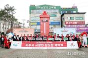 정안뉴스 안정주 기자 | 파주시는 지난 10일 금촌역 광장에서 사랑의 온도탑 100도시(℃)를 향한 힘찬 외침과 함께 ‘사랑의 온도탑’제막식을 개최했다고 밝혔다. 이번 행사는 ‘희망2026 나눔캠페인’(2025. 12. 1.~2026. 1. 31.)의 시작을 알리고 시민들의 기부 참여를 독려하기 위해 마련됐다. ‘희망2026 나눔캠페인’은 ‘행복을 더하는 기부, 기부로 바꾸는 파주’라는 표어 아래 이달부터 내년 1월 말까지 62일간 진행된다. 올해 사랑의 온도탑 모금 목표액은 11억 원으로, 모금 목표액의 1%(1,100만 원)가 모금될 때마다 온도탑도 1도시(℃)씩 올라간다. 이날 제막식에서는 ㈜비.엘.아이 서경아 대표의 파주시 ‘제26호 아너소사이어티’가입식도 함께 진행됐다. 또한, 아너소사이어티 회원들과 파주상공회의소, 사회복지기관, 읍면동 지역사회보장협의체 등 여러 단체에서 참여해 나눔 문화 확산에 동참하는 의지를 나타냈다. 김경일 파주시장은 “사랑의 온도탑은 ‘우리 곁에는 언제나 사랑과 나눔을 실천하는 이웃이 있다’라는 내용을 전하는 상징으로, 온도가 올라갈수록 마음의 온기가 느껴지고 파주