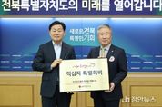정안뉴스 안정주 기자 | 전북특별자치도는 2일 도청에서 대한적십자사 전북지사에 2026년도 적십자 특별회비 500만 원을 전달했다. 이번 전달식은 2026년도 적십자 모금 개시를 알리는 제1호 특별회비 전달식으로 진행됐으며, 김관영 도지사가 직접 특별회비를 전했다. 전달식에는 대한적십자사 전북지사 김홍식 회장과 임직원이 참석해 지역사회 나눔 실천의 의미를 함께했다. 전북도는 매년 적십자 특별회비를 기탁하며 도민 참여 확산과 기부문화 정착에 앞장서고 있다. 적십자 특별회비는 지역 취약계층 긴급지원, 재난 대비 및 구조 활동, 헌혈 활성화, 안전교육 등 다양한 인도주의 사업에 활용된다. 특히 기후변화로 인한 자연재해 증가와 복지 사각지대 확대 속에서 적십자 활동의 중요성이 더욱 강조되고 있다. 내년도 대한적십자사 전북지사의 적십자회비 모금 목표는 12억 4천만 원이며, 2026년 1월 31일까지 집중 모금기간을 운영하고 있다. 김관영 도지사는 “적십자 특별회비는 어려운 이웃을 돕고 재난 상황에서 생명을 지키는 데 중요한 역할을 한다”며 “전북도는 앞으로도 도민들과 함께 지역 공동체를 위한