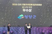 정안뉴스 황도연 기자 | 청양군은 지난 30일 청주오스코 2층 그랜드볼룸에서 열린 고용노동부 주관 ‘2025 전국 지방자치단체 일자리대상’ 공시제 부문에서 우수상을 수상했다고 밝혔다. 이는 2024년 공시제 부문 특별상·우수사업 부문 우수상에 이어 2년 연속 수상이라는 점에서 더욱 큰 의미가 있다. ‘전국 지방자치단체 일자리대상’은 고용노동부가 지자체의 일자리 정책 성과와 추진 의지를 종합 평가해 우수 지자체를 선정·포상하는 제도다. 특히 공시제 부문은 지자체가 수립한 일자리 목표와 대책의 충실성, 이행 실적, 지역 특화 일자리 창출 노력 등을 종합적으로 평가한다. 군은 ‘일자리환경 선순환 체계 구축 농촌모델 선도’를 전략목표로 정하고, 지역 여건에 맞춘 맞춤형 일자리 창출을 위해 ▲고용 취약계층 지원 확대 ▲농촌형 사회적경제 활성화 ▲청년·여성 일자리 발굴 ▲지역 특산품 연계형 일자리 모델 개발 등을 추진해 왔다.. 주요 성과는 전국 최초로 농촌 맞춤형 일자리플랫폼 ‘청양군일자리정보망’을 운영하며 수요자 중심의 일자리 정보를 제공했고, 사회적경제기업 전략 육성을 통해 2년 연속 우수