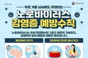정안뉴스 안정주 기자 | 전북특별자치도는 15일 겨울철 노로바이러스 감염증이 증가함에 따라 개인 위생수칙을 철저히 지켜줄 것을 당부했다. 질병관리청 표본감시 결과에 따르면 최근 4주간 병원급 의료기관에서 확인된 노로바이러스 감염 환자는 45주 70명에서 46주 94명, 47주 101명, 48주 127명으로 지속적인 증가세를 보이며 주의가 필요한 상황이다. 노로바이러스는 영하 20도의 낮은 온도에서도 생존하는 등 저항력이 매우 강해 매년 11월부터 이듬해 3월까지 집중적으로 발생한다. 일상 환경에서도 사흘간 생존이 가능하고 적은 양의 바이러스로도 감염을 일으킬 만큼 전염력이 높다. 주된 감염경로는 오염된 지하수나 어패류 섭취이며, 환자 접촉이나 분비물을 통한 사람 간 전파도 쉽게 발생한다. 감염 시 12~48시간 내 구토와 설사가 나타나며 복통과 발열, 오한을 동반하는 경우도 있다. 전북도는 노로바이러스가 높은 전염력을 지니고 있지만, 올바른 손씻기와 안전한 식재료 조리 등 기본 수칙만으로도 충분히 예방할 수 있다고 강조했다. 비누를 사용해 30초 이상 손을 씻고 식재료는 85℃ 이상에서 1분 이상