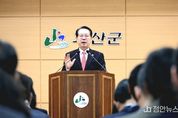 정안뉴스 황은경 기자 | 충북 괴산군 송인헌 군수가 1일 직원 조회에서 올 한 해 군이 이뤄낸 주요 성과를 언급하며 직원들의 노고에 감사를 전했다. 송 군수는 “올해 괴산군은 정부 공모사업 211건을 통해 총 8,876억 원의 예산을 확보했고 생활인구 352만 명 달성으로 군 단위 지자체 중 1위를 기록하는 성과를 거뒀다”며 “반다비체육관, 파크골프장 등 체육 인프라 확충과 음악분수, 에코브릿지 등 새로운 관광 명소 조성으로 지역 활력도 한층 높아졌다”고 밝혔다. 이어 “양귀비꽃이 어우러진 빨간맛 페스티벌을 시작으로 고추축제, 김장축제 등 다채로운 지역 축제도 지역 경제 활성화에 기여하며 지속 가능한 지역 발전의 성장 동력을 마련했다”고 평가했다. 그는 “도전과 변화에는 저항이 따르지만 각자의 자리에서 묵묵히 최선을 다해준 직원들 덕분에 이러한 성과를 이룰 수 있었다”며 “조직은 오케스트라와 같아 각 부서가 조화를 이뤄야 최고의 결과를 만들어낼 수 있다”고 강조했다. 마지막으로 송 군수는 “서로 신뢰하고 협력한다면 더 큰 성과도 충분히 가능하다”며 “간부 공무원들이 솔선수범해 신명나는 직장 분위기를