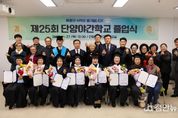 정안뉴스 황은경 기자 | 배움의 시기를 잃어버린 지역주민들에게 만학의 꿈을 지켜온 단양야간학교(교장 이상곤)가 단양야간학교 통합교실에서 지난 11월 27일에 값진 스물다섯 번째 졸업식을 개최했다고 밝혔다. 이날 졸업식에는 2025년 1차 및 2차 검정고시에 합격한 졸업생 8명과 가족들, 야간학교 교사, 김문근 단양군수, 이상훈 단양군의회의장, 오영탁 충청북도의원 등 40여명 참석해 뜻깊은 졸업의 기쁨을 함께했다. 금년도 고등과정 검정고시에 합격하여 영예로운 졸업장을 받은 이 모씨(63세)는 “바쁜 일상으로 포기하고 싶은 순간들도 정말 많았지만, 선생님들의 애정 어린 가르침과 같이 배움을 함께한 학우들의 열정에 힘입어 오늘 의미있는 졸업장을 받을 수 있었다”며 고마움을 전했다. 지난 2000년에 처음 문을 연 단양야간학교는 25년의 세월 동안 변함없이 자리를 지키며 배움에 목마른 주민들의 갈증을 해소하고, 더 높은 길로 인도하는 평생학습의 등대 역할을 충실히 수행하여 왔다. 야간학교 자원봉사자 선생님들과 학생들의 꾸준한 노력의 결과, 금년도 졸업생을 포함하여 누적 졸업생이 200명(총 201명)을 넘