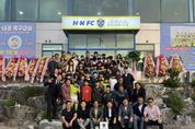 정안뉴스 황도연 기자 | HNFC 홍성내포축구클럽은 지난 9월 30일, 클럽센터 개소식을 열고 지역사회 나눔 활동의 일환으로 드림스타트 대상 가정에 후원물품을 전달했다. 이번 개소식에서는 축하 화환 대신 기증받은 쌀 화환(10kg, 10포)을 드림스타트 사례관리 대상 아동 가정 10가구에 지원하며 지역과 함께하는 따뜻한 행보를 이어갔다. 김동산 감독은 “센터 개소를 단순히 축구 활동 공간 마련으로 끝내지 않고, 지역사회와 함께 성장하는 출발점으로 삼고 싶다”며, “앞으로도 아이들이 꿈을 키워가고 지역 주민들과 따뜻한 나눔을 이어갈 수 있도록 노력하겠다”고 말했다. 박미성 홍성군 가정행복과장은 “드림스타트 아동을 위해 뜻깊은 나눔을 실천해주신 HNFC 홍성내포축구클럽에 깊이 감사드린다”며, “앞으로도 아동의 건강한 성장과 복지 향상을 위해 민·관 협력이 지속되길 바란다”고 말했다. 한편, 드림스타트는 만 12세 이하 취약계층 아동 및 가족, 임산부를 대상으로 신체 건강, 인지·언어, 정서·행동 등 다양한 영역에서 맞춤형 통합서비스를 제공하는 프로그램으로, 지역자원과의 연계를 통해 아동의 건강한 발달을