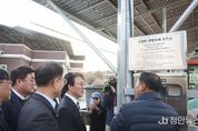 정안뉴스 안정주 기자 | 김민석 국무총리(대통령직속 2050 탄소중립녹색성장위원회 위원장)는 11월 20일 오후, 마을 공동체 태양광 우수사례인 경기 여주시 구양리 마을 태양광 발전소 시설을 방문하여 마을주민과 관계기관의 의견을 청취하고 공동체의 선도적인 노력을 격려했다. 이번 현장 방문은 이재명 정부 국정과제인 ‘재생에너지 중심 에너지 대전환’의 일환으로 주민 공동체 사업의 전국 확산을 독려하기 위해 추진됐다. 구양리 마을태양광 발전소는 주민 전체가 참여한 마을협동조합이 주도하여 약 1MW 규모의 태양광 발전설비를 구축하고, 수익 전액을 마을식당, 마을버스 등 마을 복지에 사용하여 공동체 회복과 연대형성에 기여하는 선도모델로 주목받고 있다. 정부는 햇빛연금 확대, 햇빛소득마을 조성 등을 국정과제로 채택했으며, 우선 농식품부 주도로 수도권 2개소를 선정하여 영농형 태양광 구축 및 발전수익을 지역에 환원하는 시범사업을 추진 중이다. 농촌 마을태양광의 본격 활성화를 위해서는 재생에너지에 대한 주민 수용성 개선, 마을 주민의 사업역량 및 투자재원 확보 지원과 함께 애로사항 해소 등이 필요하다.