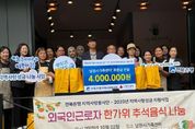 정안뉴스 안정주 기자 | 남원시가족센터는 지난 10월 2일 고유 명절인 추석을 맞이하여 관내 외국인근로자를 대상으로 음식나눔 행사를 실시했다. 이번 외국인근로자 추석음식 나눔은 JB금융그룹 전북은행 지역사랑성금 400만원을 지원받아 진행됐다. 남원시가족센터에서는 2016년부터 외국인 근로자를 대상으로 한국어 교육을 실시해 왔으며, 현재는 8개반 37명이 한국어 교육 서비스를 받고 있다. 또한 남원시가족센터는 외국인지원센터를 운영하여 증가하는 외국인 주민들의 안정적인 정착을 돕고, 지역사회의 일원으로서 통합을 지원하기 위한 다양한 체류 지원 서비스를 제공하고 있다. 이번 명절 한가위 음식나눔 꾸러미는 찰밥, 산적, 떡, 과일, 생활용품으로 구성되어 있으며, 다양한 국가(캄보디아, 미얀마, 네팔, 스리랑카, 방글라데시 등)의 근로자 70명에게 전달됐다. 나찬도 센터장은 “다문화가족과 지역민, 그리고 센터가 삼위일체가 되어 서로 소통하고 이주민들의 한국 사회정착을 적극적으로 지원하고 함께하는 센터가 되도록 적극적으로 수행해 나가겠다”라고 소감을 밝혔다. 여성가족과 김미옥과장은 “
