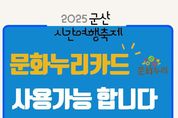 정안뉴스 안정주 기자 | 군산시가 12일까지 열리는 '2025 군산시간여행축제' 기간 동안 통합문화이용권(문화누리카드) 임시 가맹점을 운영해 시민들이 축제 현장에서 더욱 쉽고 편리하게 통합문화이용권(문화누리카드)를 사용할 수 있도록 지원했다. 통합문화이용권(문화누리카드)는 문화체육관광부와 한국문화예술위원회가 추진하는 문화복지사업으로, 기초생활수급자 및 차상위 계층에게 연간 14만 원의 문화비를 지원해 공연·영화·도서·체육·국내관광 등 다양한 문화생활을 누릴 수 있도록 돕는 제도이다. 일반적으로 식·음료 결제가 제한되지만, 지역축제와 같은 특별 행사에서는 임시 가맹점을 통해 사용이 가능하다. 이번 축제에서는 먹거리 부스와 소품 장터 등 임시 가맹점이 운영되어, 통합문화이용권(문화누리카드) 이용자들이 직접 결제하며 프로그램을 즐길 수 있게 했다. 군산시는 이번 축제를 통해 통합문화이용권(문화누리카드) 이용자들이 문화체험의 폭을 넓히고, 통합문화이용권의 활용 가치를 알리는 계기가 되길 기대하고 있다. 김형옥 문화예술과장은 “통합문화이용권은 생활 속에서 문화를 누릴 수 있는 유용한 복지 제도.