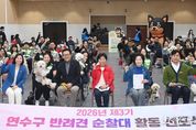 정안뉴스 안정주 기자 | 연수구는 지난 21일 구청 대회의실에서 반려견순찰대 ‘연수지킴댕댕이’ 활동 선포식을 열고 3기 순찰대원을 공식 위촉했다. 2024년 연수구는 인천 기초자치단체 최초로 직영 반려견순찰대 운영을 시작했으며, 올해 3기를 추가로 모집해 서류 및 현장 심사를 거쳐 총 87팀을 위촉했다. 이날 행사는 위촉장 수여식 후, 민재연 수의사의 ‘안전한 순찰과 건강한 일상생활을 위한 반려견 운동 가이드’ 강좌와 반려견순찰대 기본 사항 및 순찰 방법에 대한 교육이 진행됐다. ‘연수지킴댕댕이’는 반려견과 함께하는 일상적인 산책을 통해 우리 동네 구석구석을 살피며 생활 불편 사항을 점검하고 펫티켓을 홍보한다. 순찰대는 야간 시간대 범죄취약지역을 중심으로 합동 순찰을 하고, 관내 공원에서 ‘펫티켓 홍보 캠페인’ 등을 추진할 계획이며, 구는 연말 순찰대 활동 사례 발표를 통해 우수 순찰대원을 표창할 예정이다. 반려견순찰대는 지난해 4월부터 9개월간 총 5,640회 순찰했으며, ▲112 신고 13건, ▲안전신문고 신고 130건 등 총 143건의 신고를 접수했다. 이재호 구청장은