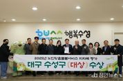 정안뉴스 안정주 기자 | 대구 수성구는 보건복지부가 실시한 2025년 ‘노인맞춤돌봄서비스 지자체 평가’에서 대상을 수상하며 ‘돌봄 공백 없는 어르신 행복 도시’의 위상을 입증했다. 수성구는 전국 229개 시군구를 대상으로 진행된 이번 평가에서 노인맞춤돌봄서비스 사업 추진 성과 전국 1위를 달성해 보건복지부 장관 기관 표창과 포상금 1,200만 원을 받았다고 밝혔다. 이번 평가는 △노인맞춤돌봄서비스 운영관리 △서비스관리(지역사회 유관 기관 네트워크 체계) △사업 성과 등 정량·정성 지표를 종합적으로 심사해 이뤄졌다. 수성구는 권역 책임제 기반의 전달체계 구축, 민관협력 네트워크, 현장 밀착형 성과관리 등을 통해 연속 돌봄 모델을 안정적으로 구현한 점이 높은 평가를 받았다. 수성구는 찾아가는 홀몸 어르신 전수조사로 신규·위기 대상자를 선제적으로 발굴하고, 유관 기관 네트워크 및 권역별 민관협의체 운영을 통해 기관 간 상호 의뢰·연계 체계를 마련했다. 또한 다양한 특화사업과 스마트 기술을 활용한 인공지능(AI)·사물 인터넷(IoT) 기반 안부·건강관리 등 예방 중심 돌봄서비스를 추진해 돌봄
