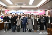 정안뉴스 황도연 기자 | 첨단 농업의 미래를 이끌 ‘논산 스마트팜’에 22명의 젊은 농업인들이 모였다. 논산시는 13일 시청 2층 상황실에서 논산 스마트팜 청년농업인과 간담회를 개최했다. 이번 간담회는 논산 스마트팜 단지에 관한 설명과 함께 청년농업인의 의견을 청취하기 위해 마련됐으며, 부적 딸기산업 스마트팜 단지 입주예정자와 청년자립형 스마트팜 지원사업 선정자 등 청년농업인들이 함께했다. 20~40대로 구성된 청년농업인들은 스마트농업 기술과 혁신적인 농업 경영을 통해 논산 농업의 미래를 주도할 것으로 기대되고 있다. 백성현 논산시장은 “스마트팜과 첨단농업 기술 도입을 통해 지역 농업의 경쟁력을 높이고 지속가능한 생산 체계를 구축해 나가는 것이 매우 중요하다”며 “여러분의 도전과 열정이 논산 농업의 미래를 밝히는 큰 힘이 될 것”이라고 말했다. 또한, “시에서도 청년농업인의 안정적 정착을 위해 주거 지원과 기술교육 등 종합적인 지원을 아끼지 않겠다”며 “함께 힘을 모아 스마트농업 기반의 고품질 원예 산업을 발전시키고, 청년 일자리 창출과 지역 인구 유입까지 이어지는 논산 농업의 새로운