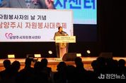 정안뉴스 안정주 기자 | 남양주시는 지난 6일 남양주시체육문화센터 실내체육관에서 ‘2025년 남양주시 자원봉사 대축제’를 성황리에 개최했다고 7일 밝혔다. 이번 행사는 12월 5일 ‘자원봉사자의 날’을 기념해 사단법인 남양주시자원봉사센터에서 주최했으며, 한 해 동안 남양주 곳곳에서 나눔을 실천한 자원봉사자들의 노고를 격려하고 활동의 결실을 함께 나누기 위해 마련됐다. 행사에는 1,300여 명의 자원봉사자와 내빈이 참석해 뜻깊은 시간을 함께했다. 식전공연으로 줌바댄스 ‘아이린줌바크루’의 역동적인 무대가 펼쳐졌으며, 1부 축하 행사에서는 자원봉사자 MC 장현주의 진행 아래 캘리그래피 퍼포먼스 ‘캘리깡패’가 이어졌다. 이와 함께 가수 연미연과 이효진의 축하공연이 더해져 현장의 분위기를 한층 뜨겁게 달궜다. 2부 기념식에서는 ‘무럭이가족봉사단’ 김태하 어린이가 가족봉사활동 경험을 나누는 이그나이트 발표를 통해 자원봉사의 의미를 되새기는 감동적인 시간을 선사했다. 남양주시민의 자원봉사 참여는 올해 큰 성장을 기록했다. 11월 기준 자원봉사자 등록 인원은 약 21만 명으로 전체 시민의 약 29%에 달해, 시민