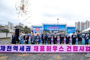 정안뉴스 황은경 기자 | 제천시는 10월 14일, 역세권 도시재생사업의 핵심 거점시설인 '채움하우스 건립사업' 기공식을 갖고 본격적인 사업추진의 첫걸음을 내디뎠다고 밝혔다. 채움하우스 건립사업은 쇠퇴한 제천역 인근의 원도심 재생을 위해 2020년 9월 국토교통부 도시재생 뉴딜사업 공모에 선정된 이후, 충북개발공사와 위·수탁 협약 체결(2020년 11월), 건축기획 심의(2021년 5월), 설계공모 및 실시설계 착수(2021년 12월) 등 행정절차를 거쳐 추진되어 왔다. 이어 2023년 9월 공공주택건설 사업계획 승인, 2024년 7월 국토부 활성화계획 변경승인, 2025년 1월 사업계획 변경승인을 마치고 금년 10월 드디어 공사에 착공하게 됐다. 총사업비 220억 원이 투입되는 채움하우스는 지하 1층, 지상 7층 규모(연면적 4,624㎡)로 조성된다. 1~2층에는 주민거점시설인(연면적 1,301㎡) 상생상가 지원센터와 게스트하우스(12호) 등이 들어서며, 3~7층에는 공공임대주택 50호(연면적 3,323㎡)가 건립된다. 김창규 제천시장은 “채움하우스는 역세권 도시재생의 상징적 거점시설로서, 주거안정과 상권 활성