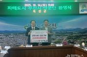 정안뉴스 황은경 기자 | 14일, 조용익 부천시장을 비롯한 부천시 충청권 정책현장 벤치마킹 방문단 24명이 ‘향수의 고장’ 옥천군을 방문했다. 이번 만남은 2002년 자매결연을 체결한 두 지역 간의 우호 증진과 교류 확대를 위한 자리로 마련됐다. 이날 옥천군과 부천시는 각 200만 원의 고향사랑기부금을 상호 기탁하며 두 지역의 발전을 함께 응원했다. 황규철 옥천군수는 옥천군청에 마련된 기탁식에서 “공직자들의 고향사랑 상호 기부가 지역 간 상생 협력의 통로가 되고 있다”며 “부천시와 따뜻한 연대를 이어가게 되어 기쁘다”고 말했다. 조용익 시장 역시 “기부를 통해 두 지역이 더욱 돈독해지고, 함께 성장할 수 있기를 기대한다”고 전했다. 특히, 얼마 전 모금을 시작한 ▲옥천군 첫 지정기부사업 '예체능 꿈나무 지원(양궁·관악부)'과 ▲부천시 지정기부사업 '소외계층 스케이트 무료교실 운영'을 각각 홍보하여 두 자매도시의 협력 관계를 바탕으로 기부제 확산에 긍정적 영향을 미칠 것으로 기대된다. 옥천군에 따르면, 두 도시의 인연은 1940년대 부천시에 거주하며 소사성당 건립에 기여한 정지용 시인의 공덕을 기리며 시작됐고 2