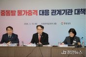 정안뉴스 김재홍 기자 | 경상남도는 10일 오전 개최한 이란사태 비상경제 대책회의 후속조치로 지역 유류가격 인상 등으로 민생경제 충격을 완화하기 위해 같은 날 오후 시군 등 관계기관 합동 물가안정 대책회의를 개최했다. 이번 회의는 김명주 경제부지사 주재로 농협중앙회 경남지역본부, 한국농수산식품유통공사(aT) 경남지역본부, 이마트 창원점, 도와 시군 경제 관련 부서장 등 관계기관 관계자들이 참석한 가운데 진행했다. 이날 회의에서는 경남 소비자물가 동향과 주요 품목별 가격 상황을 점검하고, 농축수산물·에너지·교통·서비스 등 도민 생활과 밀접한 분야의 물가안정 방안을 집중 논의했다. 김명주 경제부지사는 “최근 도내 주유소 기름값 상승 등으로 민생경제 부담이 커지고 있는 상황”이라며 “도민이 체감하는 물가 부담을 최소화할 수 있도록 시군 및 관계기관과 긴밀히 협력해 농축수산물 수급 안정과 개인서비스요금 관리 등 생활물가 안정에 총력을 다해 대응하겠다”고 말했다. 경상남도는 2월 소비자물가 상승률이 다소 둔화되는 흐름을 보이고 있으나, 중동발 국제유가 상승과 환율 영향으로 도내 휘발유와 경유 평균 가격이 3