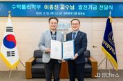 정안뉴스 김재홍 기자 | 경상국립대학교는 3월 31일 오전 11시 대학본부 3층 접견실에서 자연과학대학 수학물리학부 이종진 교수의 대학발전기금 전달식을 개최했다. 이종진 교수는 이날 대학 발전을 위해 1000만 원을 기탁했다. 이로써 이 교수의 총 기부 금액은 1250만 원에 달한다. 이날 행사에는 경상국립대학교 권진회 총장, 이병현 연구부총장, 김경수 국제협력부처장, 황정숙 국제협력과장 등 대학 관계자와 기부자인 이종진 교수, 김영순 자연과학대학장 등이 참석해 자리를 빛냈다. 이종진 교수는 2004년 서울대학교에서 물리학 박사학위를 취득한 후, 삼성전자 반도체사업부와 GIST, KAIST 연구교수를 거쳐 2014년 경상국립대학교 교수로 임용됐다. 특히 2024년부터 2025년까지 자연과학대학장을 역임하며 단과대학의 발전에 헌신했다. 이번 기탁은 이 교수가 학장 재임 시절 느꼈던 단과대학 차원의 유연한 예산 확보 필요성을 몸소 실천에 옮겼다는 점에서 의미가 깊다. 기부금은 자연과학대학의 행정 수요 및 교육 환경 개선을 위해 사용될 예정이다. 이종진