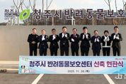정안뉴스 황은경 기자 | 청주시는 20일 흥덕구 강내면 태성리에 신축한 청주시 반려동물보호센터(서부로 411-23)에서 준공을 기념하는 현판식을 개최했다. 행사에는 이범석 청주시장을 비롯한 시 관계자와 청주시의회 의장, 농업정책위원회 위원 등 20여명이 참석했으며, 행사는 내빈 소개, 개회 및 국민의례, 경과보고, 현판식 및 현장시찰 순으로 진행됐다. 시는 청주하이테크밸리 일반산업단지 예정지(강내면 태성리)에 기존 반려동물보호센터가 편입됨에 따라, 2020년 사업계획을 수립하고 반려동물보호센터 신축 건립을 추진했다. 지난해 6월 공사에 돌입해 올해 8월 건축면적 1,265㎡, 연면적 6,620㎡ 규모로 센터를 건립하고 준공했다. 총사업비는 85억1천만원(국비 16억, 도비 2.8억, 시비 66.3억)이 투입됐다. 신축 센터는 수용 규모를 확대해 기존 160마리 수용 규모에서 260마리까지 수용이 가능해졌다. 이와 함께 시설 현대화, 입양자에게 공개된 사육실(분양 대기실, 고양이 룸) 및 교육실을 조성해 이용자와 수용 동물에게 한층 더 개선된 환경을 제공하게 됐다.