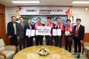 정안뉴스 김재홍 기자 | 김해FC가 김해축협과 손을 잡고 2026시즌의 힘찬 레이스를 시작한다. 김해FC는 31일 오전 10시 김해시청에서 구단주 홍태용 김해시장과 김해축협 송태영 조합장이 참석한 가운데 공식 후원 협약식을 개최했다. 김해축협은 ‘천하1품’ 한우와 ‘산들에참포크’ 등 장관상을 휩쓴 명품 브랜드를 가진 국내 축산업 발전의 선두주자로 국민 건강을 책임지고 있는 지역 대표 금융·축산 기관이다. 이번 협약은 김해축협의 새 슬로건인 ‘든든한 축산 동반자, 김해축협’ 정신을 바탕으로 지역 상생의 의미가 크다. 김해축협은 김해FC의 공식 파트너로서 구단의 안정적인 운영을 돕고, 김해FC는 경기력을 통해 김해축협의 브랜드 가치를 높이는 ‘윈-윈(Win-Win)’ 전략을 펼친다. 송태영 조합장은 “우리 시 첫 프로축구단의 탄생에 시민들의 기대가 큰 만큼, 팬들의 뜨거운 열기에 부응하기 위해 지원을 결심했다”며“김해축협이 그 여정에 동행하게 되어 기쁘고 앞으로 김해FC가 승승장구할 수 있도록 아낌없는 응원과 지원을 이어가겠다”고 말했다. 홍태용 시장은 “김해축협은 우리 시가 축산업 도시로 성장하는 데