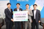 정안뉴스 안정주 기자 | OB맥주(주) 전주지점이 26일 전주시를 찾아 취약계층의 따뜻한 겨울나기를 위한 성금 300만 원을 쾌척하며 본격적인 추위가 시작되는 연말을 맞아 지역사회에 훈훈한 감동을 전했다. 이날 전달식에는 채용석 전주지점장을 비롯한 임직원이 참석해 따뜻한 나눔의 의미를 더했다. 기탁된 성금은 사회복지공동모금회를 통해 전주시 저소득 계층의 생계 지원 및 복지시설 지원 등 필요한 곳에 사용될 예정이다. 채용석 OB맥주(주) 전주지점장은 “우리가 이어온 나눔이 지역 취약계층의 생계 안정에 작지만 따뜻한 보탬이 되기를 바란다”면서 “앞으로도 우리 지역의 어려운 이웃들이 희망을 잃지 않고 살아갈 수 있도록 꾸준하고 진정성 있는 사회공헌 활동을 펼치겠다”고 말했다. 전주시 관계자는 "따뜻한 마음을 모아 나눔을 실천해 준 OB맥주(주) 전주지점 임직원들에게 진심으로 감사하다“면서 ”기탁해 준 성금은 전주시 어려운 이웃들의 삶에 소중한 힘이 될 수 있도록 의미 있게 사용하겠다"고 말했다. 전주시 완산구에 소재한 OB맥주(주) 전주지점은 21명의 직원이 근무하는 지역 기반 기업으로, 매년 취약계층