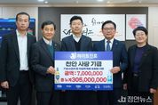 정안뉴스 황도연 기자 | (재)천안시복지재단은 20일 하이트진로㈜ 천안지점이 취약계층 주민을 위한 후원금 700만 원을 기탁했다고 밝혔다. 후원금은 복지사각지대 해소를 위한 지원사업과 김장 지원 사업을 위해 사용될 계획이다. 하이트진로 천안지점은 천안지역 복지사각지대 해소를 위해 현재까지 누적 3억 500만 원의 후원 활동을 이어오고 있다. 김태홍 하이트진로 천안지점장은 “지역사회 상생 경영을 실천하는 것이 기업의 사회적 책임”이라며 “앞으로도 폭넓은 사회공헌 활동을 통해 지역과 함께하는 기업이 될 것”이라고 말했다. 이운형 천안시복지재단 이사장은 “기업들의 상생 경영 실천을 위한 후원이 계속되고 있다”며 “후원자들의 취지에 맞게 잘 전달할 수 있도록 최선을 다할 것”이라고 말했다.