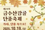 정안뉴스 황은경 기자 | 충북 단양군 적성면 금수산 일원에서 열리는 ‘제24회 금수산감골단풍축제’가 오는 19일 상학주차장 일원에서 열린다. ‘가자, 단풍 속으로!’를 슬로건으로 한 이번 축제는 금수산의 오색 단풍을 배경으로 산행·공연·체험·먹거리가 어우러진 풍성한 프로그램을 선보인다. 금수산감골단풍축제추진위원회(위원장 박완수)가 주관하고 단양군이 후원하는 이번 행사는 금수산 단풍 산행을 시작으로 산신제와 개막식, 축하공연 순으로 진행된다. 축하공연에는 정다경·진영·금수봉 등 초대가수가 출연해 흥겨운 무대를 선보이며, MC 안은채의 사회로 즉석 게임과 경품 추첨이 함께 진행된다. 주민이 직접 참여하는 체험부스에서는 ▲떡메치기 ▲곶감 만들기 ▲한지공예 ▲드립커피 시음 ▲가훈 써 주기 ▲단풍잎 책갈피 만들기 등 총 8개 프로그램이 운영된다. 오미자 음료, 강정, 감 디저트, 지역 농·특산물 등 단양의 맛과 멋을 한자리에서 즐길 수 있는 판매부스와 먹거리 장터도 열린다. 이 밖에도 ‘금 한돈을 잡아라!’, ‘도전! 금수산 최강 산악회’ 등 특별 이벤트와 금수산 산행 이벤트가 함께
