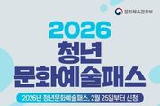 정안뉴스 안정주 기자 | ■ 2026 청년문화예술패스, 2월 25일부터 신청 - 19~20세 청년 최대 20만 원 청년 문화예술패스는 19~20세 청년*이 협력 예매처에서 공연, 전시, 영화 예매에 즉시 사용할 수 있는 이용권입니다. * 2026년 대상은 2006~2007년생 서울, 경기, 인천 등 수도권 지역 거주 청년→15만 원 비수도권 지역 거주 청년→20만 원 기존에는 사전에 한 개의 예매처만 선택해 이용할 수 있었는데요. 올해부터는 7개 예매처에서 공연과 전시, 영화 등 보고 싶은 작품의 관람권을 예매할 수 있습니다. NOL ticket, 티켓링크, yes24, Melon티켓, MEGABOX, 롯데시네마, CGV ■ 지원대상 대한민국 19~20세 청년 총 28만 명 생애 최초 1회 지원 ■ 신청기간 2026년 2월 25일~6월 30일 신청순 발급(지역별 예산 소진 시 해당 지역 발급 마감) ■ 신청방법 청년문화예술패스 누리집 회원가입 후 온라인 신청 ■ 문의 청년문화예술패스 고객지원센터 ☎1577-1968