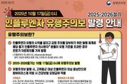 정안뉴스 황도연 기자 | 공주시는 최근 예년보다 빠른 시기에 인플루엔자 환자가 증가함에 따라 전국적으로 인플루엔자(독감) 유행주의보가 발령돼 예방접종과 개인 위생수칙 준수가 그 어느 때보다 중요한 상황이라고 밝혔다. 질병관리청이 실시한 의원급 인플루엔자 표본감시 결과에 따르면, 올해 45주차(11.2.~11.8.) 인플루엔자 의사환자 수는 최근 10년간 같은 기간과 비교해 가장 높은 수준을 기록했다. 외래환자 1,000명당 인플루엔자 의사환자 수는 50.7명으로, 전주(22.8명)에 비해 2배 이상 증가한 것으로 나타났다. 공주시는 지난 9월부터 인플루엔자 확산 방지를 위해 13세 이하 어린이, 임신부, 65세 이상 어르신 등을 대상으로 관내 위탁 의료기관에서 인플루엔자 무료 예방접종을 실시하고 있다. 인플루엔자 예방을 위해서는 ▲기침할 때 옷소매로 가리기 ▲올바른 손 씻기의 생활화 ▲발열ˑ인후통 등 호흡기 증상자는 충분한 휴식을 취하고 외출 시에는 마스크 착용 ▲실내 자주 환기하기 등 일상에서 호흡기 예방수칙 준수가 중요하다. 조윤상 보건소장은 “인플루엔자 예방접종은 중증 진행 위험을
