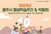 정안뉴스 황은경 기자 | 충주시는 평생학습도시 지정 10주년을 맞아 오는 18일부터 24일까지 '2025년 충주시 평생학습주간'을 개최한다고 14일 밝혔다. 올해 행사는 ‘배움으로 채우는 10년, 내일을 여는 평생학습’을 주제로, 시민 누구나 배우고 참여하며 함께 성장하는 시민 참여형 축제로 마련됐다. 행사는 충주시평생학습관과 탄금공원 메인무대를 중심으로 펼쳐지며, ‘배움·성장·미래’ 세 가지 키워드로 한 다채로운 프로그램을 진행한다. 먼저, ‘배움’을 주제로 한 '제8회 충주시평생학습박람회'에서는 10주년 특별공연과 개막식, 유공자 시상식을 비롯해 동아리 발표회, 작품 전시, 체험 부스, 프리마켓, 푸드존 등 시민이 즐길 수 있는 다채로운 현장 행사가 열린다. 다음으로, ‘성장’을 주제로 한 '제9회 충주시 문해 한마당'에서는 몸풀기 웃음체조, 삼행시 한마당, 문해 골든벨(OX퀴즈), 성인문해교육 시화전 등 문해학습자들의 성과를 공유하며 성인문해교육의 가치를 되새긴다. 마지막으로, ‘미래’를 주제로 한 평생학습도시 지정 10주년 기념행사에서는 평생학습 정책포럼, 인문학·미래과학·명사