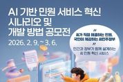 정안뉴스 안정주 기자 | 행정안전부는 국민이 일상에서 겪는 생활 문제를 인공지능(AI)이 이해하고 해결까지 지원하는 인공지능(AI) 기반 민원 서비스 모델을 발굴하기 위해 '인공지능(AI) 기반 민원서비스 혁신 시나리오 및 개발 방법 공모전'을 개최하고, 2월 9일부터 3월 6일까지 공모를 받는다고 밝혔다. 이번 공모전은 민간의 창의적인 아이디어와 기술 역량을 활용해 정부가 추진 중인 ‘AI통합민원플랫폼’ 구축에 반영할 혁신적인 시나리오와 개발 방법을 발굴하기 위해 마련됐다. ‘AI통합민원플랫폼’은 인공지능(AI)이 국민의 요구를 이해하고, 정부24·국민신문고 등 정부 민원시스템과도 연계해 복합 민원을 포함한 각종 민원을 대화형으로 한곳에서 처리하는 인공지능(AI) 기반 민원 플랫폼이다. 공모 주제는 “인공지능(AI)이 직접 해결하는 민원, 국민이 체감하는 AI 민주정부”로 국민이 일상에서 경험하는 문제를 출발점으로 인공지능(AI)이 민원을 이해·판단·연계·해결하는 서비스 시나리오와 구현 방안을 자유롭게 제안할 수 있다. 제안의 사례로, “식당을 열고 싶어요”라고 말하면 인공지능(AI)이 인허가,