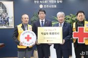 정안뉴스 안정주 기자 | 전주시의회가 기부문화 확산을 위해 적십자 특별회비 전달에 동참했다. 전주시의회는 8일 의장실에서 남관우 의장과 대한적십자사 전북특별자치도지사 김홍식 회장, 대한적십자사봉사회 최봉만 완산지구 협의회장, 라태원 덕진지구 협의회장 등이 참석한 가운데 2026년도 적십자 특별회비 전달식을 가졌다. 이날 전달된 특별회비(100만원)는 긴급재난구호와 지역사회 봉사, 취약계층 지원 등에 사용된다. 남관우 의장은 “인도주의를 바탕으로 헌신적 봉사활동에 앞장서고 있는 적십자사의 활동에 깊이 감사를 드린다”며 “전주시에 나눔과 봉사의 아름다운 꽃이 활짝 피어날 수 있도록 전주시의회도 최선을 다하겠다”고 말했다. 이에 김 회장은 “적십자 특별회비로 나눔문화 확산에 앞장선 전주시의회에 감사드리며, 앞으로도 적십자는 도움의 손길이 필요한 곳에 늘 함께하겠다”고 화답했다.