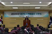 정안뉴스 안정주 기자 | 대구도시개발공사가 2026년 새해를 맞아 새로운 비전 제시와 청렴 실천 다짐을 통해 시민 신뢰 제고에 나섰다. 공사는 1월 2일 본사 대강당에서 전 임직원이 참석한 가운데 ‘2026년 시무식 및 NEW 비전 선포식, 반부패 청렴 결의대회’를 개최했다. 이번 행사는 어려운 대내외 경영 여건 속에서도 시민이 체감할 수 있는 성과를 창출하기 위한 조직의 실행력을 강화하고, 공공기관으로서 책임경영과 청렴문화를 확립하기 위해 마련됐다. 이날 시무식에서 정명섭 사장은 한 해 동안 맡은 바 업무를 성실히 수행해 온 임직원들의 노고를 치하하며, 2026년에도 열정과 추진력을 바탕으로 전사적 역량을 결집해 시민 중심의 성과를 만들어 나가자고 강조했다. 이어 진행된 NEW 비전 선포식에서는 미래 변화에 선제적으로 대응하고 도시혁신 전문기관으로 도약하겠다는 의지를 담아 새 비전인 “시민 행복과 공간 미래가치를 창출하는 도시혁신 주도 공기업”을 선포했다. 또한 전문성·상생·신뢰·혁신을 핵심가치로 제시하며 공공기관으로서의 역할과 책임을 강화해 나가겠다는 경영 방향을 공유했다. &nb