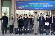 정안뉴스 안정주 기자 | 광주전남 행정통합을 주도할 민간협력기구가 닻을 올렸다. 광주·전남지역 각계 대표 500명이 320만 시도민의 뜻과 역량을 하나로 결집해 우리나라 최초 통합 광역지방정부 탄생에 앞장서겠다고 결의를 다졌다. 광주광역시와 전라남도는 16일 오후 3시 김대중컨벤션센터에서 ‘광주‧전남 행정통합 추진 범시도민 협의회’ 발대식을 열고, 대한민국 최초의 통합 광역지방정부 탄생을 위한 시도민 역량 결집에 나섰다. 협의회 발대식에는 강기정 광주시장과 김영록 전남지사를 비롯해 시·도교육감, 시·도의회 의원, 협의회 공동대표 및 위원 등 500여명이 참석했다. 이날 행사는 ▲공동대표 10명에 대한 위촉장 수여 ▲행정통합 추진경과 및 소통방안 ▲특별법안 내용 설명 ▲범시도민 결의문 낭독 ▲퍼포먼스 및 기념촬영 순으로 진행됐다. ‘광주·전남 행정통합 추진 범시도민 협의회’는 광주시와 전남도, 시·도교육청, 시·도의회, 시민사회단체, 경제·산업계, 학계·교육계, 노동계, 청년·여성·원로 대표 등 다양한 분야의 지역 인사 500명이 참여해 행정통합 공론화와 사회적 합의를 이끄는 역할을 맡는다. &nbs