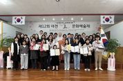 정안뉴스 안정주 기자 | 재단법인 아천문화교류재단(ACEF)이 주최-주관한 '제12회 아천효문화예술제’가 11월 1일 오후3시 아천문화교류센터에서 시상식이 개최됐다. 이날 행사에는 부모사랑 나라사랑의 올바른 가치관을 심어주기 위해 문화예술 부문의 우수한 인재들을 발굴 시상하고 올해로 12회를 맞았다. 시상식은 이승훈의 사회로 식전행사에 노 오케스트라의 연주를 시작으로 개회식, 국민의례등의 순서로 진행되었으며, 재단법인 아천문화교류재단 이사장인 성민스님은 인사말을 통하여 로마 제국시대의 철학자, 정치가, 작가, 그리고 스토아 철학의 대표인물인 루키우스 안나이우스 세네카의 말을 빌어서 인생은 철학이고, 철학은 삶이라고 하면서 평안속에서 행동으로 옮기는 삶이 진정으로 미래를 꿈꾸는 삶이라고 이야기하면서 수상자분들의 축하의 말씀과 더블어 그들의 삶이 희망과 꿈이 넘치기를 믿는다고 피력했다. 수상과 관련, 최고상인 국회의장상에는 고봉국님, 특별상인 문화체육관광부장관상에는 목포애향중학교 송은유학생, 학생부종합대상에는 한밭여자중학교 이인혜학생, 서울특별시장상에는 정호겸, 권수지님. 경기도지사상에는 박상우, 윤세화님, 인천시장상에는