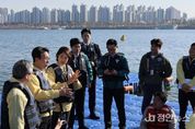 정안뉴스 안정주 기자 | 김민석 국무총리는 11월 14일 오후, 한강에서 수상활동이 가장 활발히 이뤄지는 뚝섬 일대를 방문하여 수상안전 교육, 레저활동, 한강버스 운항 등 시민들이 참여하는 수상활동 전반의 안전관리 실태를 점검했다. 김 총리는 먼저, 서울시 초・중・고 학생들을 대상으로 생존수영교육, 수상안전체험, 수상스포츠동아리 활동이 이뤄지고 있는 한강수상안전교육장을 방문하여 변영수 서울시교육청 학생교육원 교육기획운영부장으로부터 교육 운영 현황을 보고받았다. 김 총리는 한강버스 운항 이후 학생들의 교육 일정에 지장이 없도록 관계기관 간 운항정보를 실시간 공유하고 학생 안전관리와 교육 일정 운영에 각별히 유념해 달라고 당부했다. 이어, 김 총리는 수상레저업체(선스키)를 찾아 봉선재 대표로부터 레저활동 현황에 대해 설명을 들었다. 한강버스 운항 이후 수상스키 활동에 각종 어려움이 생기고 있다는 현장보고를 듣고 향후 충돌 등 사고가 생기지 않도록 예방에 힘써줄 것을 당부했다. 마지막으로 김 총리는 뚝섬 한강버스 선착장을 찾아 접안 절차, 항행 질서, 이용객 안전관리 실태를 점검하면서 특히