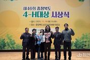 정안뉴스 황은경 기자 | 충주시 4-H회는 18일 충북농업기술원에서 열린 ‘제46회 충청북도4-H대상 시상식’에서 ▲영농기술개발(헌신상) ▲우수학교4-H회(본상) 등 총 2개 부문을 수상하는 쾌거를 거뒀다. ‘영농기술개발’ 부문에서 지덕노체상(헌신상)을 수상한 라송희 회원(여, 38세)은 지난 2018년 귀농 이후 오이와 쌈채 하우스를 운영하며 과학영농 기반의 재배 기술을 실천한 점이 높은 평가를 받았다.. 그는 초기 300평 노지에서 시작해 재배 체계를 정비하며 시설을 갖춰 나갔고, 현재는 8,000평의 연중 생산이 가능한 농장을 운영 중이다. 또한, 2023년부터 2024년까지 충주시4-H연합회 회장을 역임하며 총회, 수련대회, 공동과제포 수확물 기부, 수해 복구 일손 돕기 등 사회봉사 실천에도 앞장서 왔다. ‘우수학교4-H회’ 부문에서 본상을 받은 국원고등학교(교장 김진영)는 29명의 4-H 회원이 활동 중이며, 충주농업고등학교 시절부터 현재까지 적극적으로 4-H 이념을 실천하고 있다. 특히 텃밭 가꾸기, 교내화단 조성, 농산물 가공체험 등 청소년의 건전한 농심 함양 프로그램들을