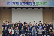 정안뉴스 황은경 기자 | 청주시는 19일 유네스코 국제기록유산센터에서 공약이행시민평가위원들과 관계 공무원 등 80여 명이 참석한 가운데 ‘민선8기 3년 공약 이행평가 종합보고회’를 개최했다. 이번 보고회에서는 지난 10월 개최된 각 분과회의를 통해 도출된 공약 과제의 이행평가 결과를 공유하고 남은 기간의 완성 방향과 향후 미래 과제에 대해 논의했다. 평가위원들은 민선8기 4년차에 대부분의 공약이 결실을 맺고 있고, 청주시의 공약이행이 시민이 체감하는 성과로 안정적으로 추진되고 있다고 평가했다. 88개의 공약과제는 △완료 12건 △이행 후 계속 추진 43건 △정상추진 32건 등 이행률 83.6%로 대부분이 가시적인 성과로 이어지고 있는 것으로 나타났다. 추진현황을 살펴보면, 민선8기 3년차에서는 도시기반 정비, 생활 인프라 확충, 투자활성화 등 다양한 분야에서 구체적인 성과를 거뒀다. 우선 시민참여와 사회공헌 활동의 중심 거점이 될 청주시 자원봉사센터 이전 확충사업이 지난 10월 완료됐으며, 무심천·미호강 친수공간 조성사업을 통해 모충교 일대 환경정비(4월)와 미호강 생태공원 편의시설(6