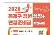 정안뉴스 황정혜 기자 | 부산 동래구는 청년들의 구직 과정에서 발생하는 경제적 부담을 덜어주기 위해 ‘2026년 동래구 청년 성장+ 면접준비금 지원사업’을 추진한다고 밝혔다. 이번 사업의 접수 기간은 1월 12일부터 12월 10일까지이며, 예산 소진 시 조기 마감된다. 지원 대상은 신청일 기준 3개월 이상 동래구에 거주 중인 18세 이상 39세 이하 미취업(창업) 청년으로, 올해 1월 1일부터 11월 30일까지 부산시 소재 기업의 채용 면접에 응시한 경우 합격 여부와 관계없이 지원받을 수 있다. 지원 금액은 면접 1회당 5만 원이며, 연 최대 2회(최대 10만 원)까지 지급된다. 신청은 동래구청 누리집을 통한 온라인 접수로만 가능하며, 면접준비금 신청서, 주민등록표 초본, 건강보험 자격득실확인서, 사실증명(사업자등록 사실 여부), 채용공고문, 면접확인서 등 증빙서류를 제출해야 한다. 다만, △국민취업지원제도·부산시 디딤돌 카드+ 등 동일·유사 사업 참여자 △공무원·공무직·정부 직접 일자리 면접 응시자 △3개월 미만 단기 아르바이트 면접 응시자 등은 지원 대상에서 제외된다. 장준용 동래구