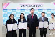 정안뉴스 안정주 기자 | 인천 미추홀구는 18일 구청장실에서 국공립어린이집 3개소와 아이사랑꿈터 1개소 위탁 운영자를 대상으로 ‘위탁계약증서 수여식’을 개최했다. 이번 수여식은 지난 10월 열린 ‘제4차 미추홀구 보육정책위원회’에서 공정하고 투명한 심사와 공개경쟁을 통해 선정된 국공립 연지·한아름·해솔어린이집과 아이사랑꿈터 9호점 위탁 운영자를 대상으로 진행됐다. 수여식을 통해 위탁 운영자에게 위탁계약 증서를 전달하고, 운영자의 공신력을 강화하며 책임감과 자긍심을 부여하는 의미를 담았다. 선정된 국공립어린이집 3개소는 오는 2026년 3월부터 5년간, 아이사랑꿈터 1개소는 2025년 11월부터 향후 3년간 시설 및 프로그램 운영 전반을 관리하게 된다. 이영훈 구청장은 “국공립어린이집과 아이사랑꿈터의 효율적이고 안정적인 관리와 내실 있는 프로그램 운영을 통해 미추홀구의 공보육 및 공동육아 체계를 강화하고, 부모들이 안심하고 맡길 수 있는 보육환경 조성에 힘써 주길 바란다.”라고 전했다.
