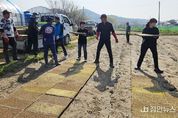 정안뉴스 안정주 기자 | 옹진군은 지난 15일과 17일, 2회에 걸쳐 영흥면 및 북도면 농가를 대상으로 볍씨 파종기 현장기술지원을 실시했다고 밝혔다. 이번 지원은 농촌 고령화와 인력 부족으로 어려움을 겪는 농가에 실질적인 도움을 제공하고, 적기 파종을 통한 안정적인 벼 생산 기반을 마련하기 위해 추진됐다. 현장에는 옹진군 농업기술센터와 농정과 공무원들이 직접 방문해 ▲볍씨 파종기 운용 방법 ▲모판 내 균일 파종 요령 ▲복토 및 초기 관수 관리 방법 ▲장비 점검 및 안전 사용법 등을 상세히 안내했다. 또한 육묘상자 운반 등 작업을 지원하며 농업인들의 현장 애로사항을 청취하는 등 밀착형 기술지도를 병행했다. 군 관계자는 “농업 현장에서 필요한 기술과 인력을 적시에 지원하는 것이 농가 소득 안정과 지역 농업 경쟁력 강화에 중요한 요소”라며 “앞으로도 현장 중심의 맞춤형 지원을 지속적으로 확대해 나가겠다”고 밝혔다. 이어 농업기술센터 관계자는 “이번 기술지원이 영흥면과 북도면 농가의 영농 준비에 실질적인 도움이 될 것으로 기대한다”며 “향후 지원 범위를 관내 전 지역으로 확대해 안정적인 영농 기반 조성에